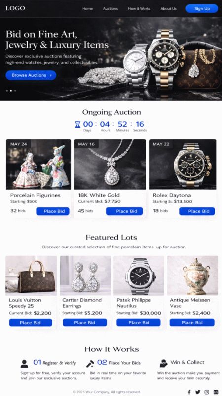 ماژولهای صنعتی جریان کار واقعی را ارائه میدهند: مزایده، بازدید، ورود B2B، رزرو زمان، پخش زنده.
