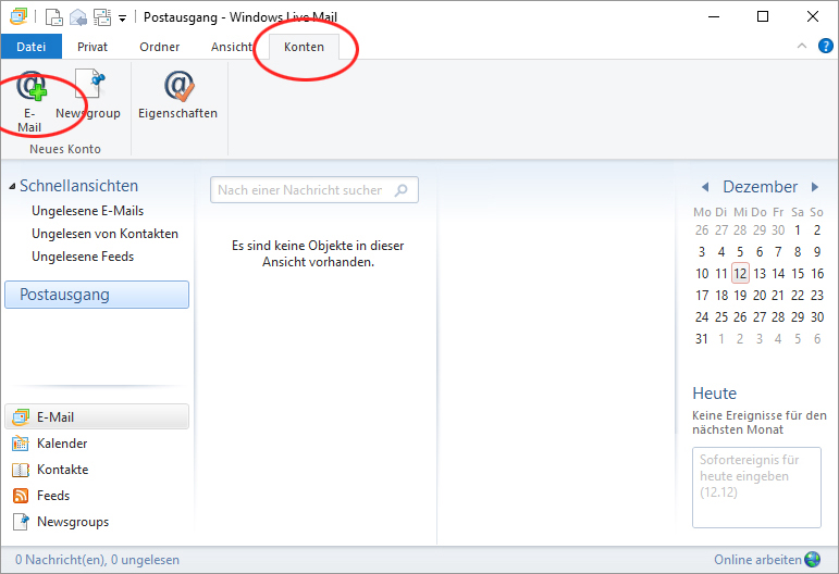 Starten Sie Windows Live Mail und klicken Sie auf Konten▶Email.