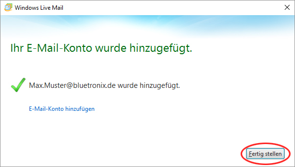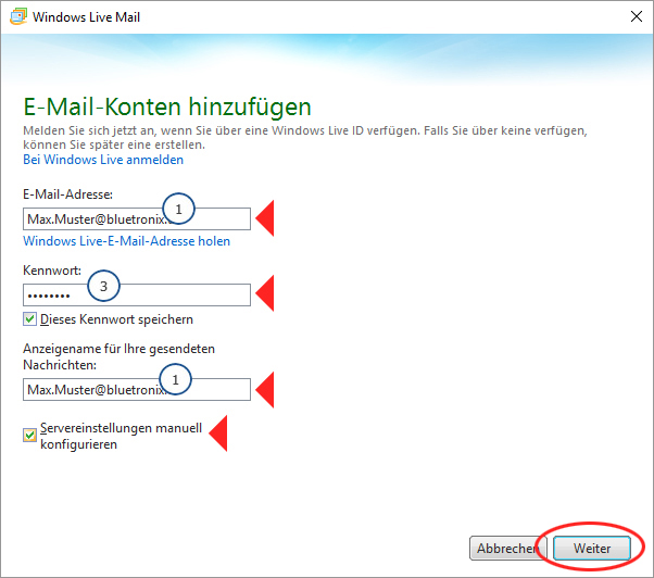 Falls Sie noch keine Email-Adresse eingerichtet haben, führen Sie zuerst den Schritt » Email-Adresse erstellen aus.